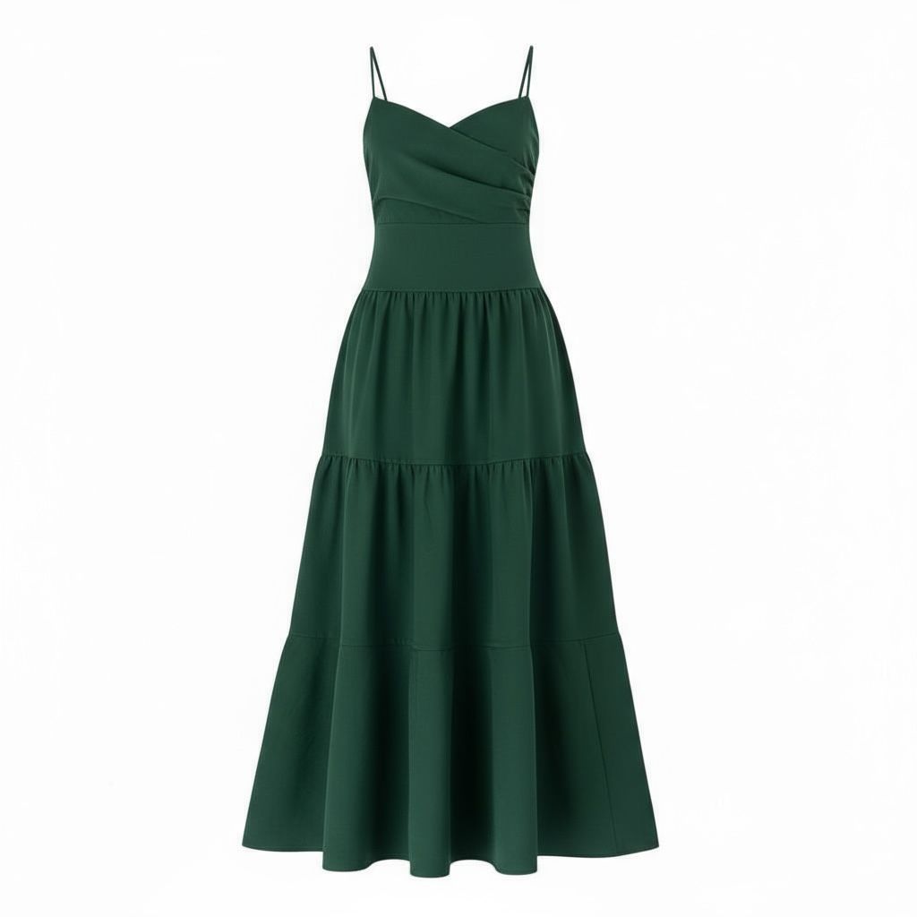 Catalina  es una vestido verde botella de largo fluido, diseñado para tardes o noches unicas  o eventos formales. Su silueta evoca elegancia, confianza y sutileza.